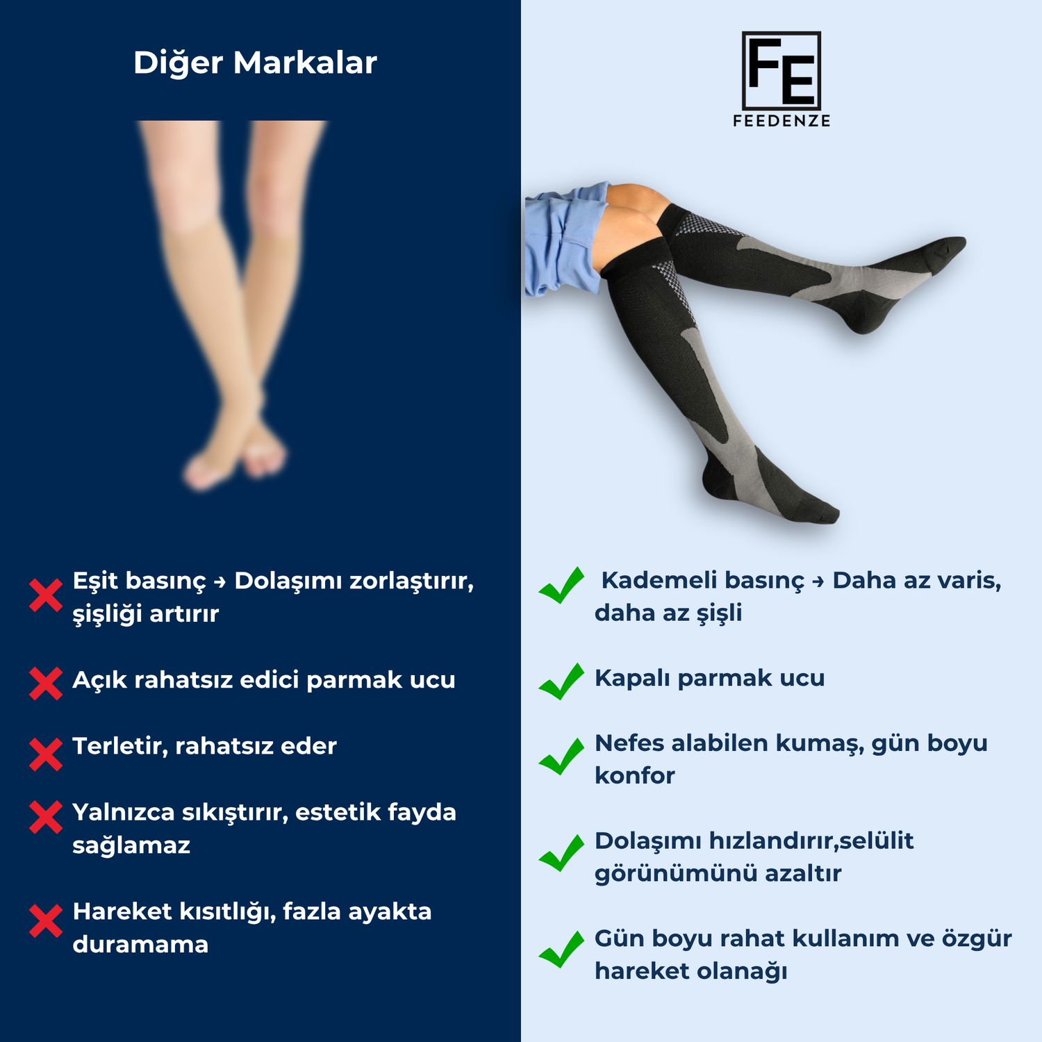 Uzman doktorlar tarafından onaylanmış bu özel varis çorapları, klinik testlerle etkinliği kanıtlanmış ürünler arasındadır. Kademeli basınç teknolojisi sayesinde dolaşımı destekler, ödem ve şişlikleri azaltmaya yardımcı olur. Günlük kullanıma uygun yapısıyla hem tıbbi fayda hem de konfor sunar. Sağlığınızı riske atmayın, doktorların önerdiği güvenilir çözümleri tercih edin.